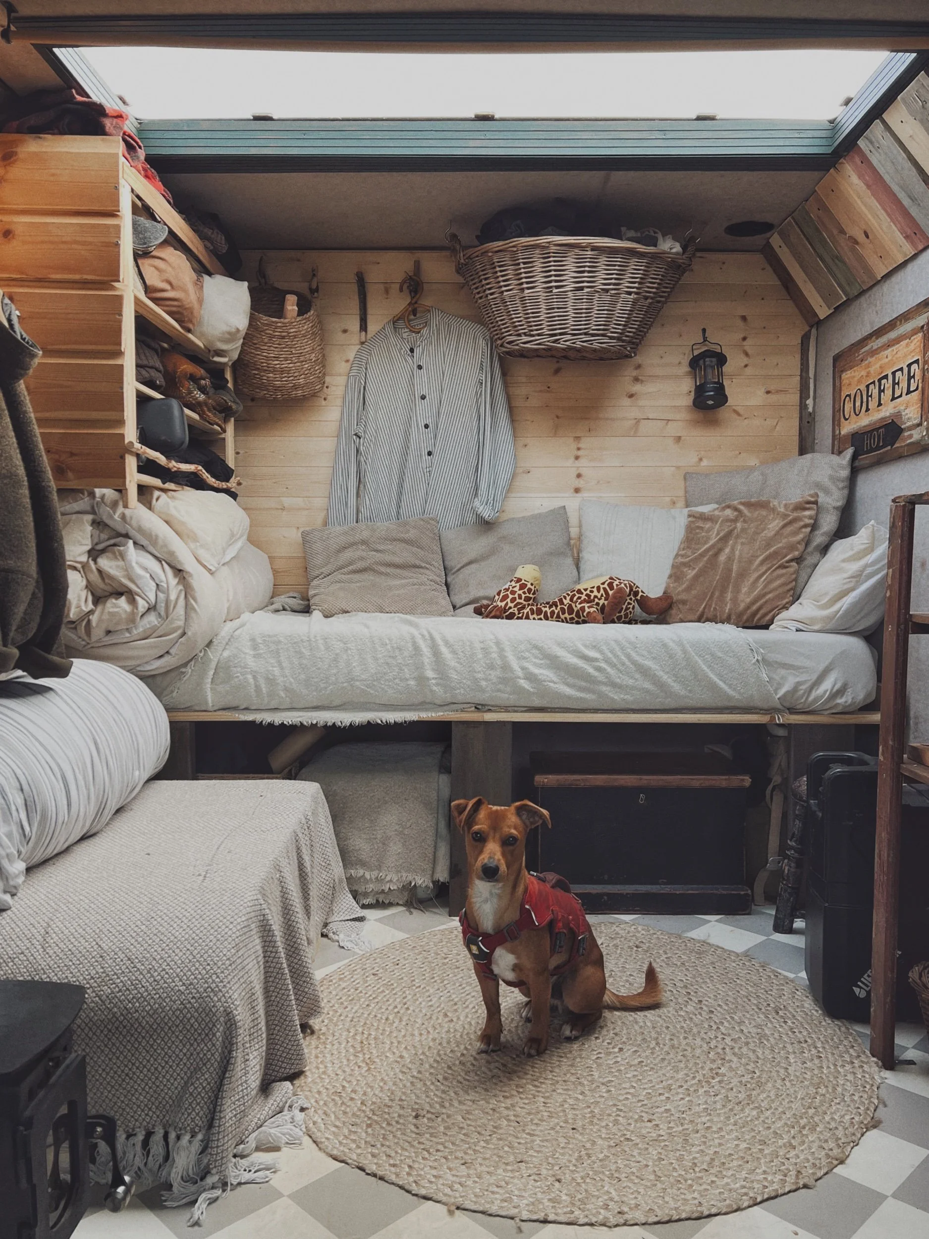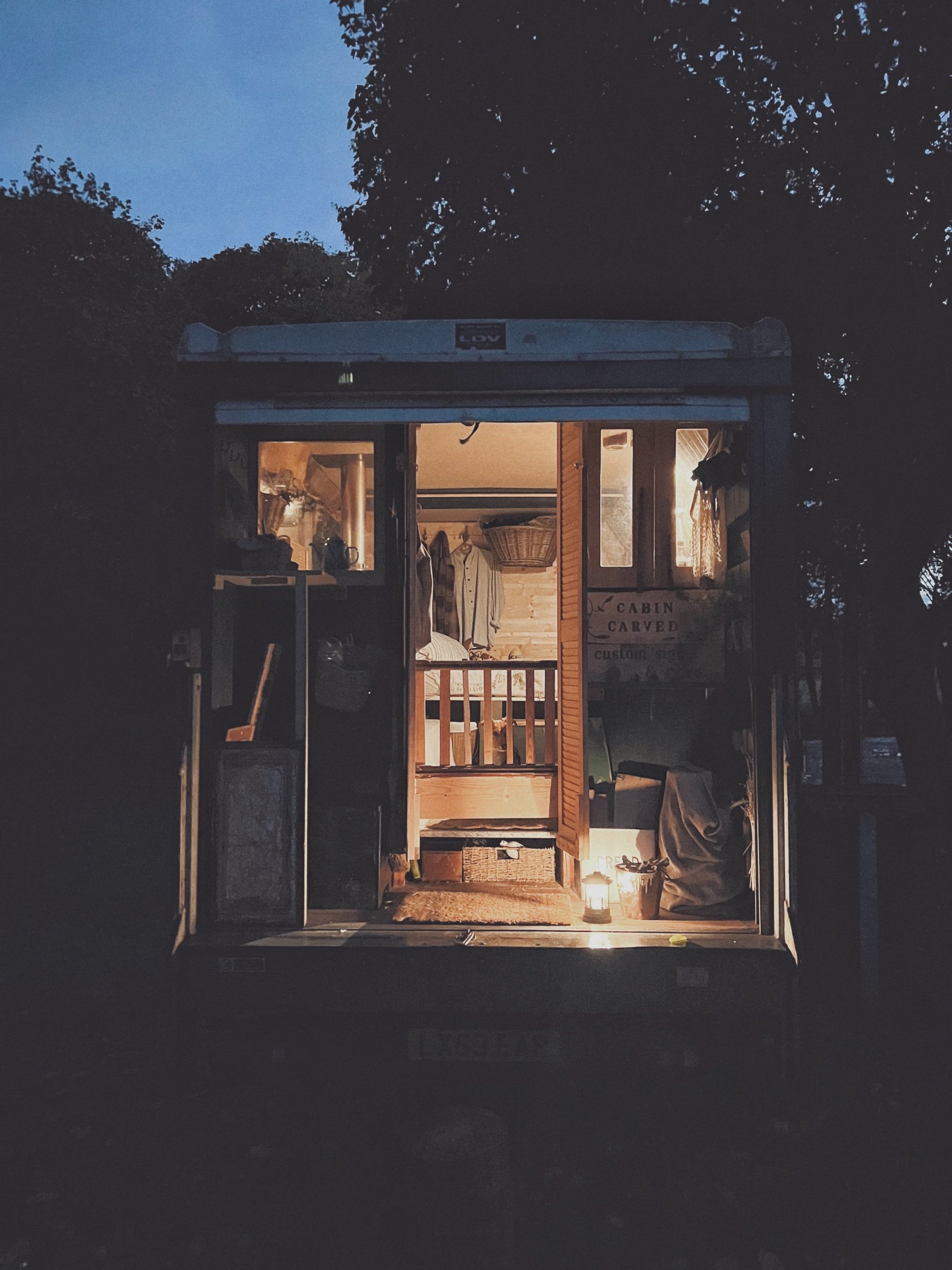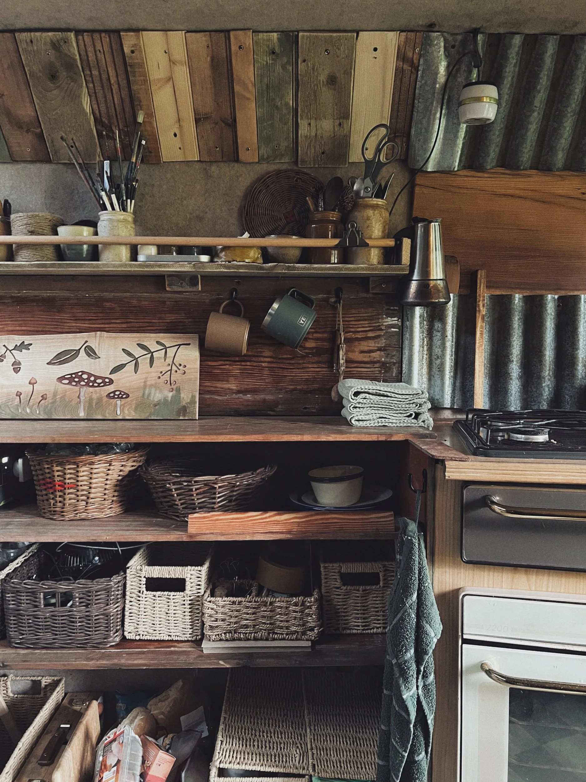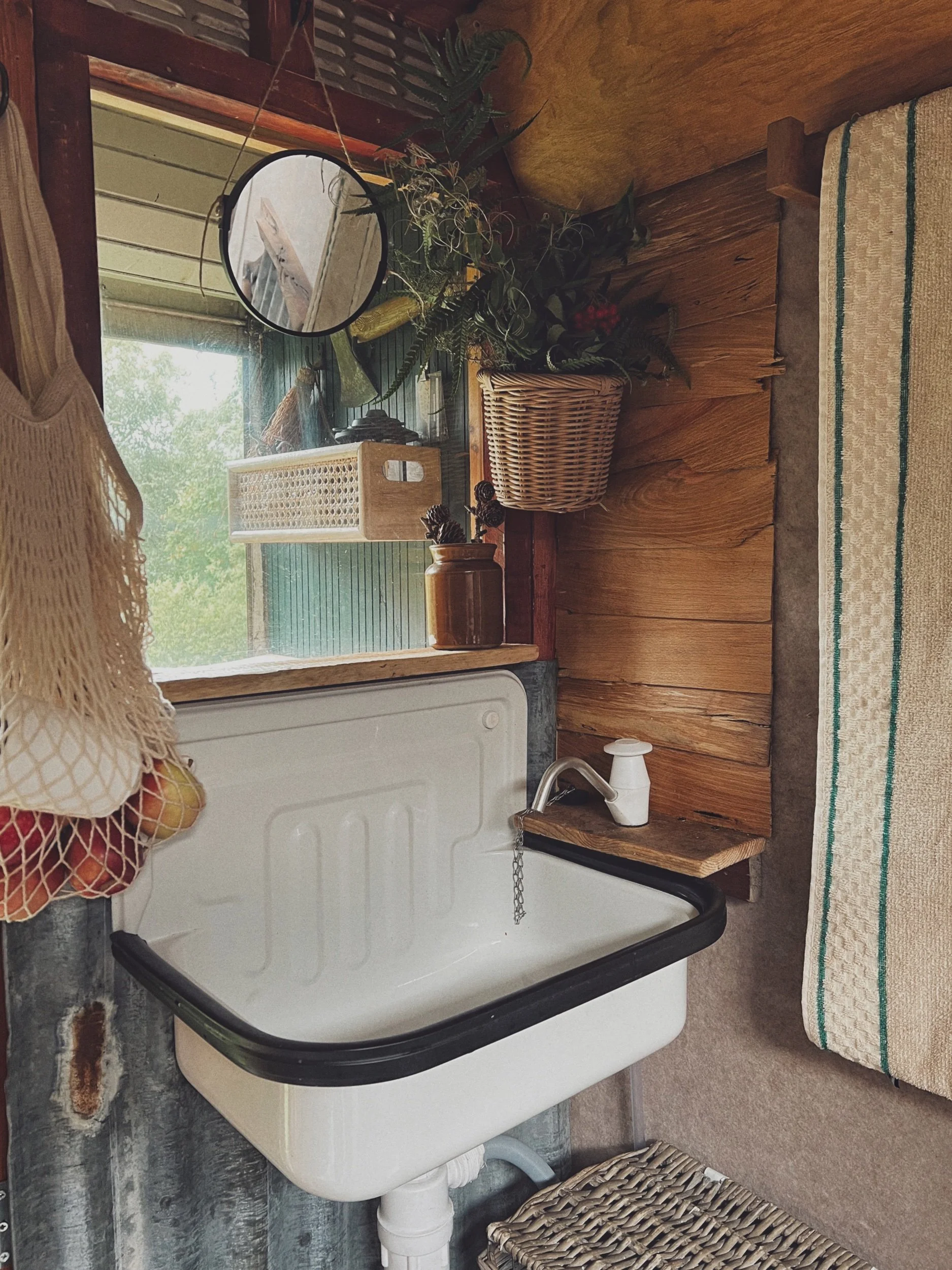 This space was not only home, but also my travelling workshop, and the back porch became my ‘messy’ space where I made signs, used power tools, and was generally chaotic without ruining the inside. During my time in this van I focused entirely on woodwork, and being able to work from anywhere meant I could spend a glorious summer on the west coast. Carving signs with the beach behind me.
